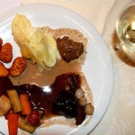 Die Rinderbäckle sind butterzart, zergehen auf der Zunge, sehr fein gewürzt, der Eigengeschmack kommt perfekt zum tragen. Auch hier wieder Sterneniveau! Die Filetstücke sind sehr gut, erreichen aber nicht das Niveau der Kalbsbäckle. Die Gemüse sind weich, natürlich ist es schwierig sie perfekt bissfest für ein derartiges Massenpublikum hinzubekommen.