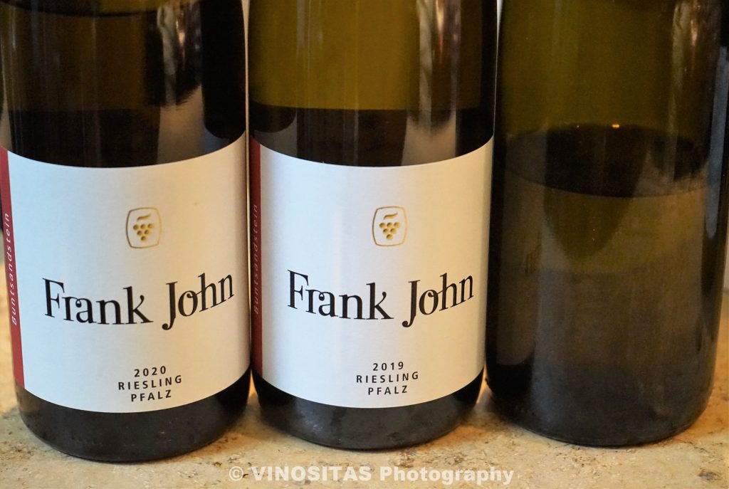 Johns Rieslinge sind alles andere als mächtig. Bei nur 11 – 12,5% Alkohol sind sie feingliedrig, klar und transparent. Geprägt von einem Korb mit hellgelben Steinobst, von Weinbergspfirsich und auch von einer zurückhaltenden Zitrusnote. An Frische mangelt es den Rieslingen trotz des BSA keinesfalls. Der BSA macht sich eher strukturell als im Aroma bemerkbar, indem er die Weine sehr harmonisch, rund und außerordentlich ausgewogen macht.