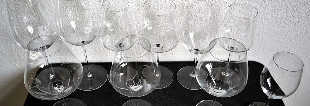 Wer sich intensiver mit Wein beschäftigt, kommt um die Glasfrage nicht herum. Wobei man sich auch fragen muss: Gibt es überhaupt das eine ‚beste‘ Glas? Googelt man, dann sieht es nicht so aus, als würde ein Glas reichen. So hat z.B. der Glashersteller Riedel über 120 verschiedene Weingläser. Noch nicht eingerechnet sind die Gläser der Marken Nachtmann und Spiegelau, die ebenfalls zur Riedel-Gruppe gehören. Die kommen noch hinzu, insgesamt an die 200 verschiedene Gläser. Nimmt man weitere Glashersteller hinzu, dann dürften über 1000 verschiedene Weingläser auf dem Markt sein. Alleine für Riesling führt Riedel über 20 verschiedene Gläser. Die Frage sei erlaubt, ob man das Weinglas „fatto a mano riesling/zinfandel“ gleich in sechsfacher Ausführung, nämlich in rot, schwarz, weiß, grün, gelb und pink gestielt braucht, das Glas für 69 Euro. Keine Frage, solange der Markt es hergibt, ist das legitim und jedermanns persönlichem Geschmack und Geldbeutel überlassen.