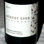 Den 2011 Rauenthaler Rothenberg Riesling trocken – Steillage vom Weingut August Eser, den Désirée Eser in die Runde einbrachte, übrigens nicht als Erstes Gewächs deklariert und preislich ein Schnäppchen, muss man als den stilistischen Gegenentwurf zum Rottland von Ress betrachten. Ebenfalls ein sehr mineralischer Wein, sogar mit einer sehr leichten petroligen Schiefernote, aber auch mit Fruchtanklängen an Karambole, Physalis und Kumquat. Dabei kein bisschen unnahbar oder schroff, sondern sehr charmant und bereits jetzt hervorragend zu trinken. Man schmeckt, dass der Wein nicht wirklich trocken ist, der Restzucker liegt aber nicht im obersten zulässigen Bereich. Man hat auch nicht den Eindruck, der Restzucker würde irgendetwas zudecken, der Wein wirkt wunderbar klar. Sicher würde ihn weniger Restzucker noch prägnanter erscheinen lassen, aber eben auch weniger charmant. Auch so könnte die Rheingauer Zukunft ebenfalls aussehen: