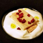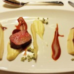 Wie schon bei der Garnele passt auch hier der Chablis ganz hervorragend. Keine der Ingredienzien des Gerichts dominiert. Selbst die Pastinakenmilch ordnet sich dem Gesamtbild unter.