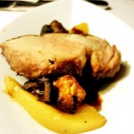 3. Gang: Rib-Eye vom Milchkalb mit geschmorten Birnen, schwarzen Nüssen und geräucherter Gänseleber