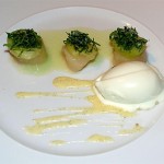 Die kleinen Amuse Geules waren ein wahres Feuerwerk an mild-würzigen und leicht säuerlich-frischem Aromen. Am schwächsten dabei die Mini-Kartoffeln mit Wildsalbei, einfach nur großartig die anderen drei.
