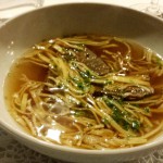 1. Gang: Rinderbrühe mit Leberknödel und Flädle