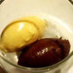 4. Gang: Mirabellen- und Schokoladen-Sorbet